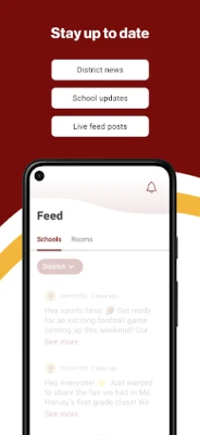 DISTRICT UPDATES In the Live Feed is where you’ll find updates from the administration about what’s going on in the district right now. Whether that’s celebrating a student’s success, or reminding you about an upcoming deadline.